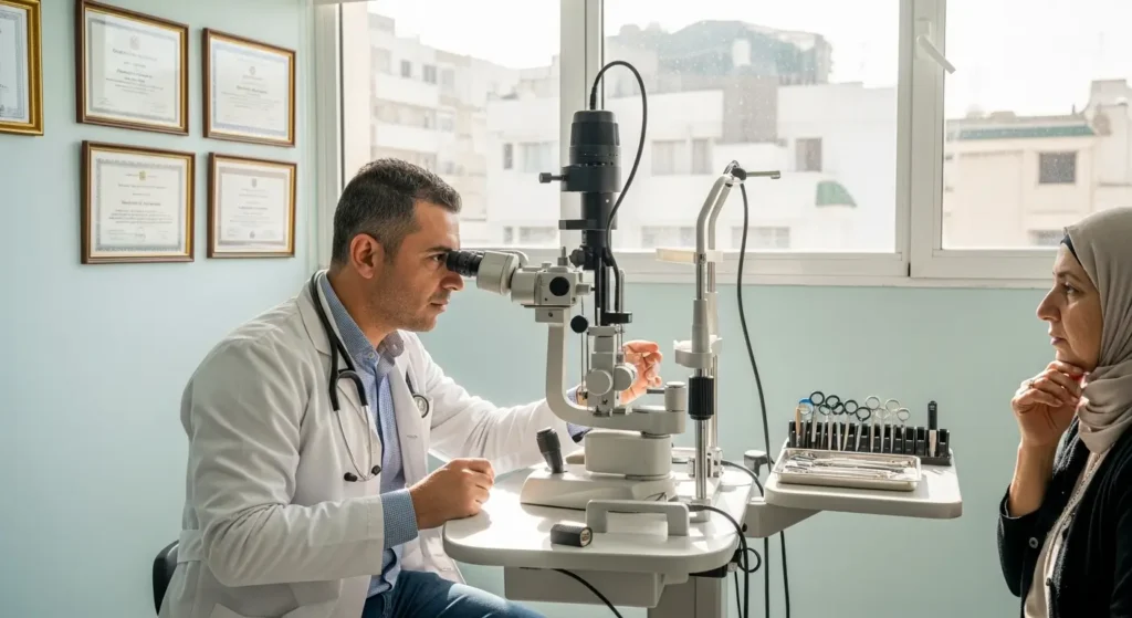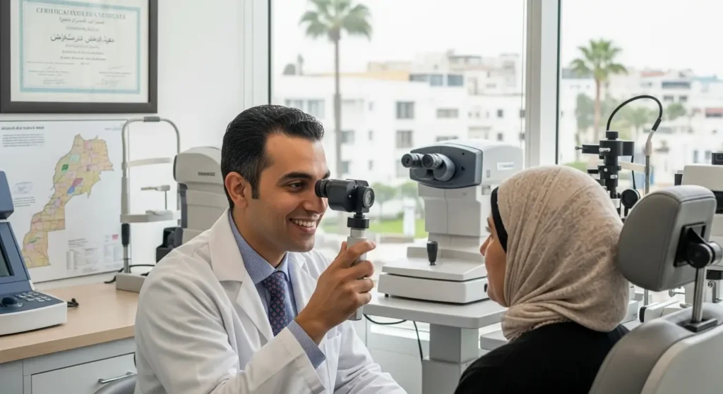 Le Dr. Charif Khalifi Mohamed cumule une expérience solide acquise au Centre Hospitalier Universitaire d’Ophtalmologie de Casablanca, complétée par des formations internationales prestigieuses, notamment à l’Indiana School of Medicine aux États-Unis. Cette double expertise marocaine et internationale garantit des soins de qualité supérieure, conformes aux standards médicaux les plus élevés.